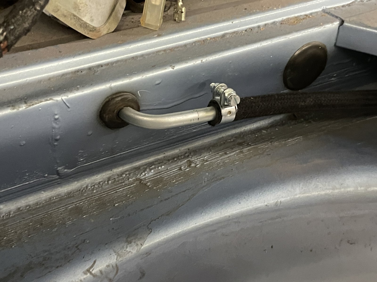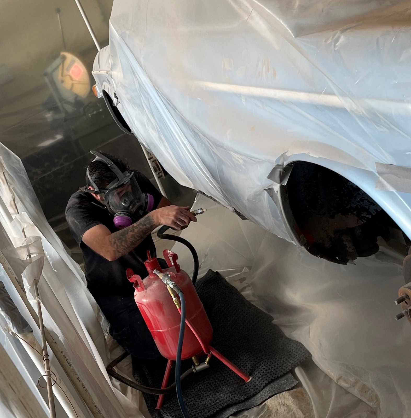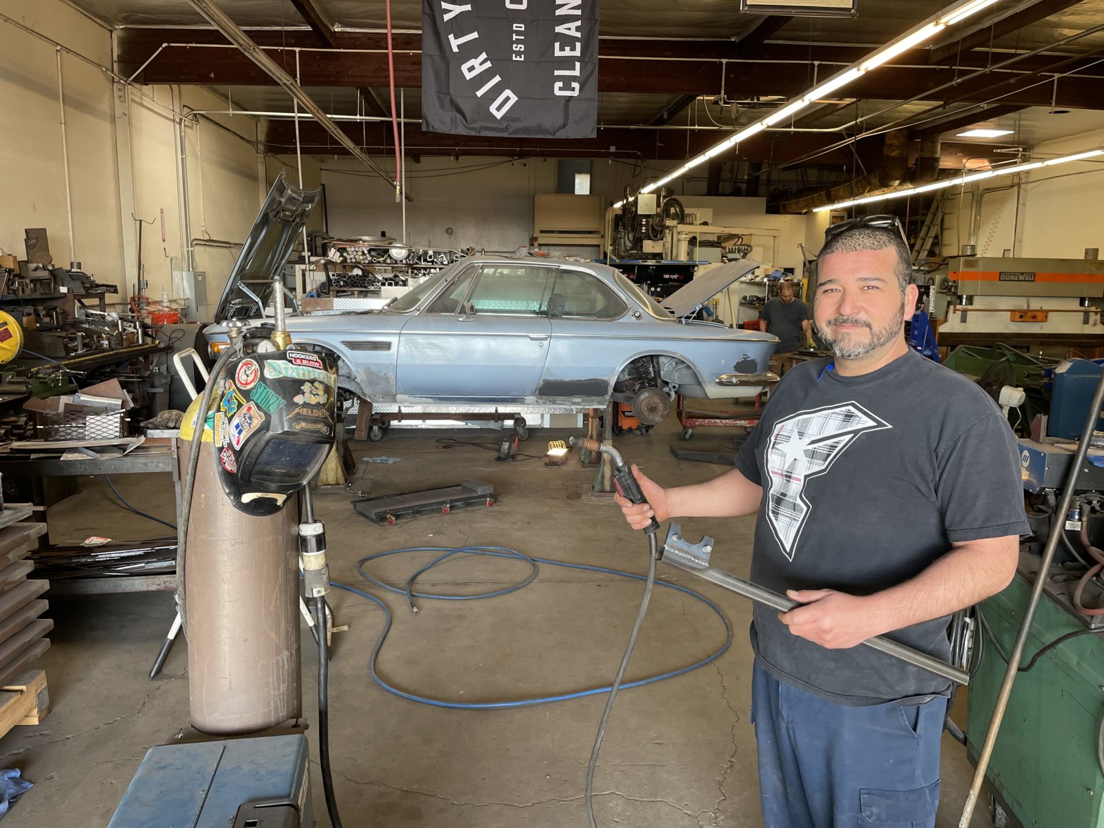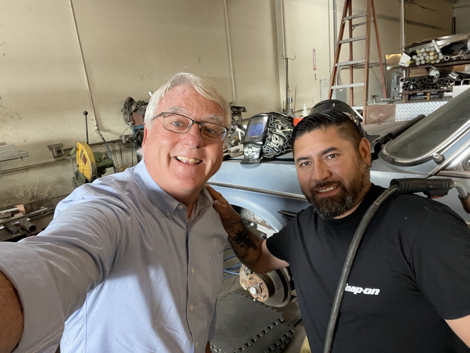 We did not complete all the body welding by Xmas. This is not for lack of trying. Elbert -the metal fabricating maestro, works a day job and has been moonlighting nights and a few weekends to get this project done. We would not be at this point without his expertise. A pleasure to assist in the shop and a total professional. We he arrives 'its all business' -its get to work and stay focused. He has done all the sheet metal fab, W&N panel trimming, final fitting and welding. He was very quick to adopt the 'return it to the factory look' stating, "I get it'. It's immensely gratifying to see each of his final efforts. We worked together on the early metal prep, I do all the panel paint prep and priming on the new sheet metal or what ever he has fabricated. If he is still welding, I follow behind and grind back the excess weld beads on the new seams. Then prime. I took on the bumper fab and fitting in parallel. Each of these days have been so gratifying. If its not obvious. I am recently retired, have carte blanc access to an awesome shop, working with great guys. I am having a blast.