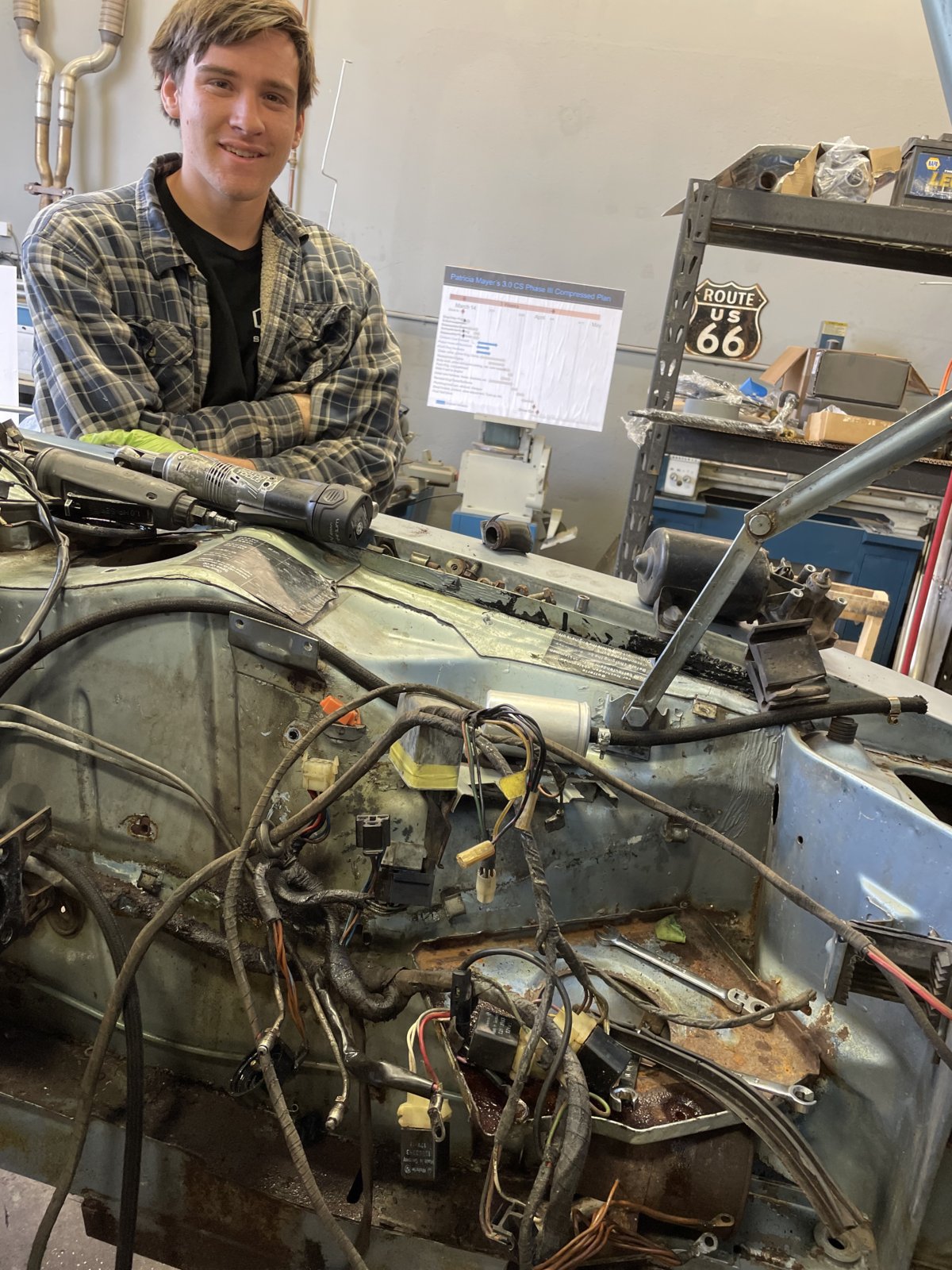 Another productive day. Introducting Dawson Graf -one of the mechanics at Reyn Speed shop. A pleasure to work with and he has a total 'can do' attitude. He's been absolutely key in making all this progress.