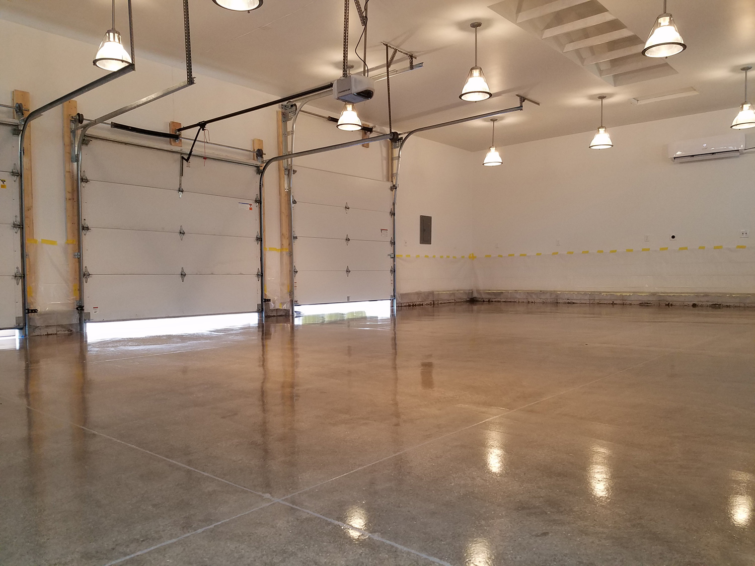 For the floor, I called in a favor from a decorative concrete company. Monday and Tuesday they were here grinding the floor. And today they are putting an industrial 2-part urethane finish on the floor. And let me tell you, WOW! Here's a pic with the first of two coats. They are out there putting the second coat on now, which will have "sharkgrip" mixed in with it. This is a virtually invisible texture that provides a great deal of slip resistance.
