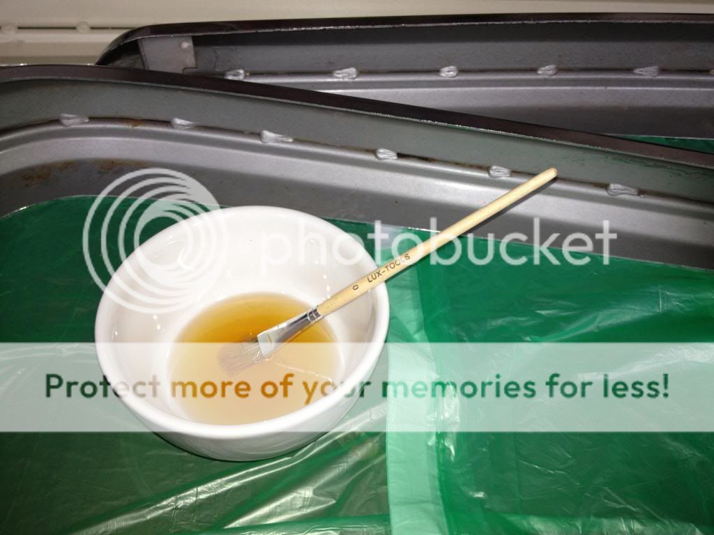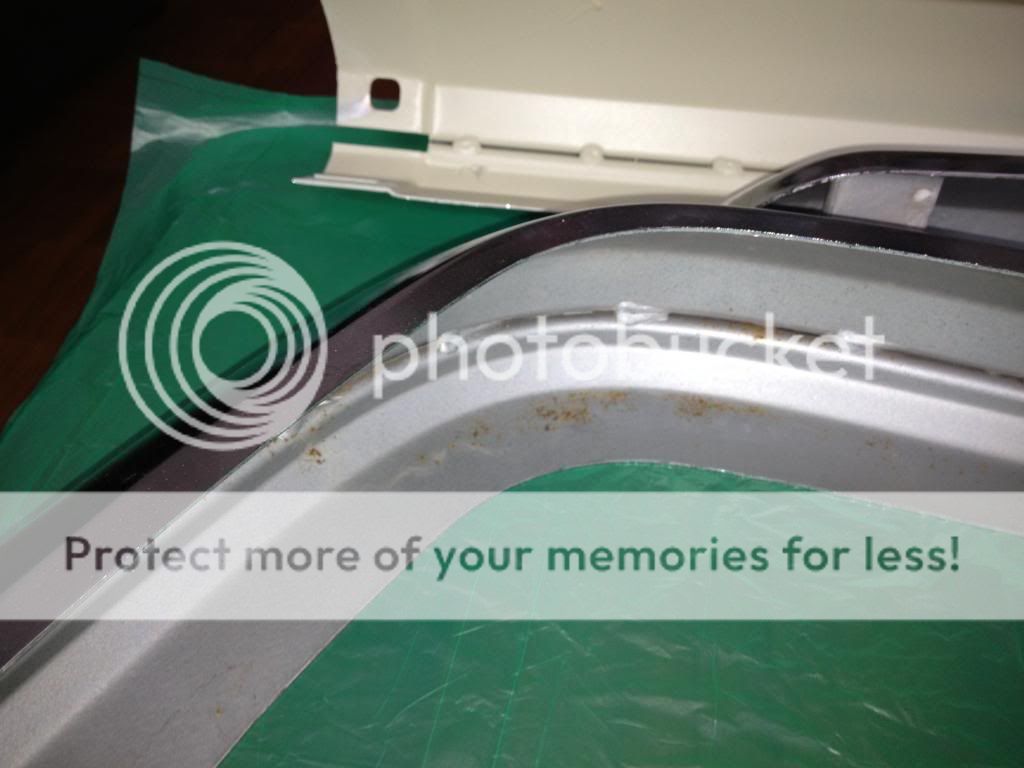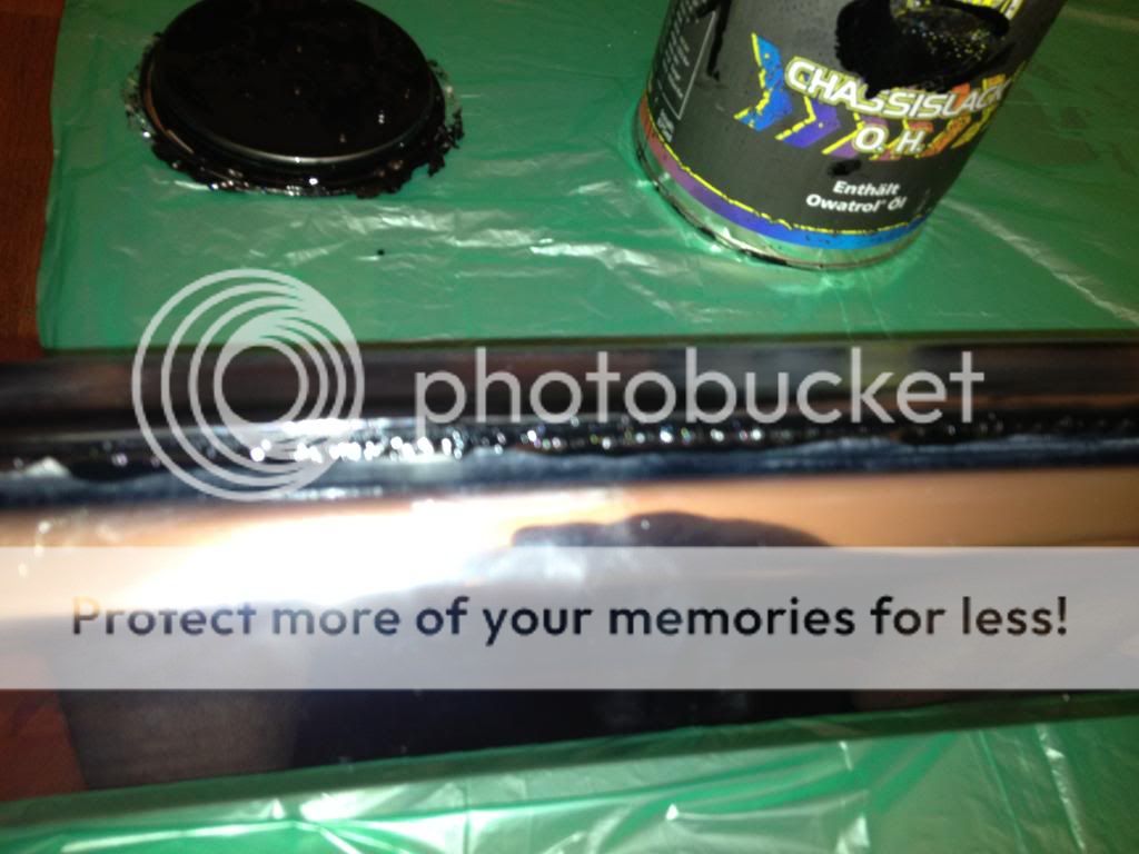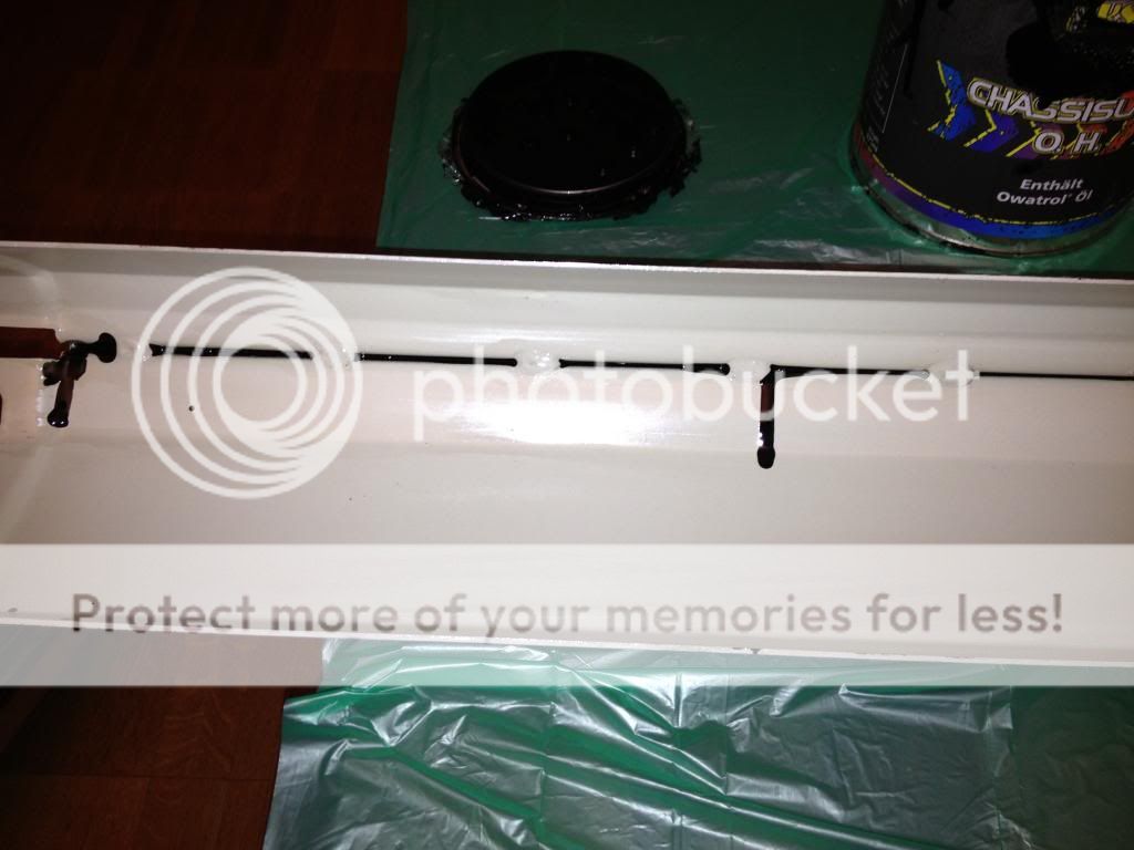 new parts. Then first creeping oil into the crevace. Then Chassis paint (with creeping oil component) into crevace and full paint of backside. Then protective fat into the crevace and the whole backside. I only reused the rubber strip (after full and carefull cleaning)