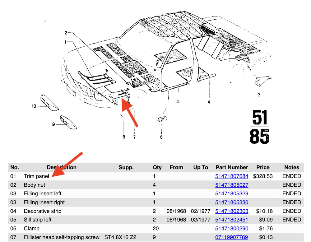 The E9 has a different PN than the E3 (51471811948 E9 vs 51471807684 E3). I would think there may be buyers for the E9 reproduction, very few for the E3 (at least in North America)Wouldn't be hard to replicate in fiberglass by pulling a plug off a good one. But a limited market to tool up for... how many owners even know it's missing?