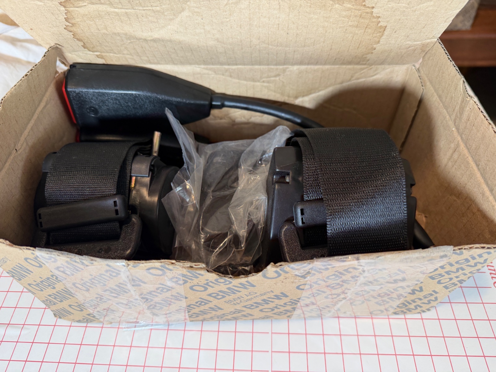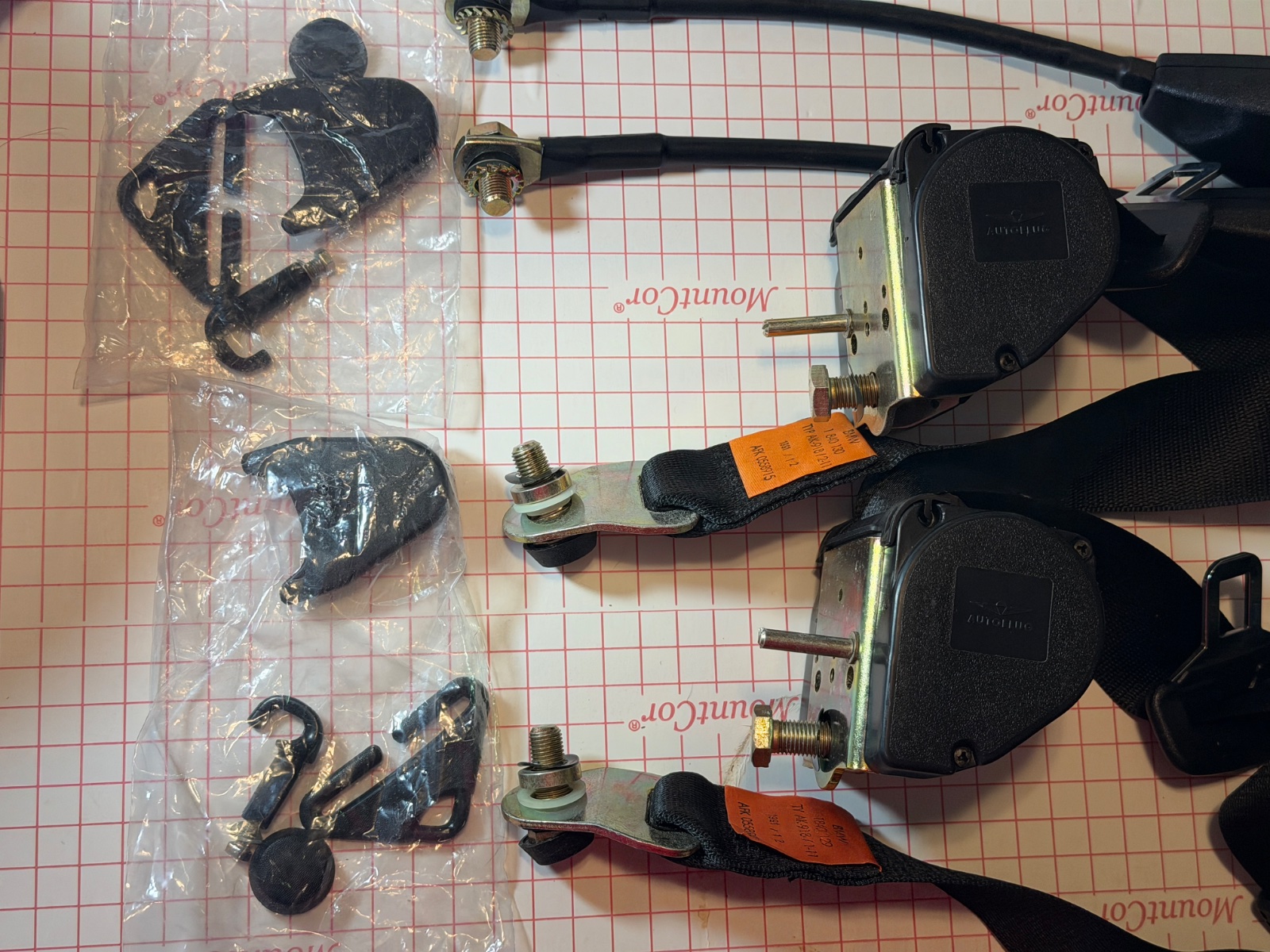These Autoflug retractable seat belts were OEM for some later model 3-liter coupes, and have both Autoflug and BMW embossments. They are designed for the retractor spool to mount behind the rear seats at the inner wheel housing. The belt webbing in the retractor is 10 feet long, so a variety of reel mount options are available, including the “Paul Cain” Mod. Please compare the fasteners and other components with part number diagrams available at RealOem. This unused, original Autoklug retractable system comes in its “two pack”BMW box. [SOLD] $800 USD.[SOLD] Free shipping anywhere. PM with any questions. Username BritshIron on BMW2002FAQ and e9 Forum.