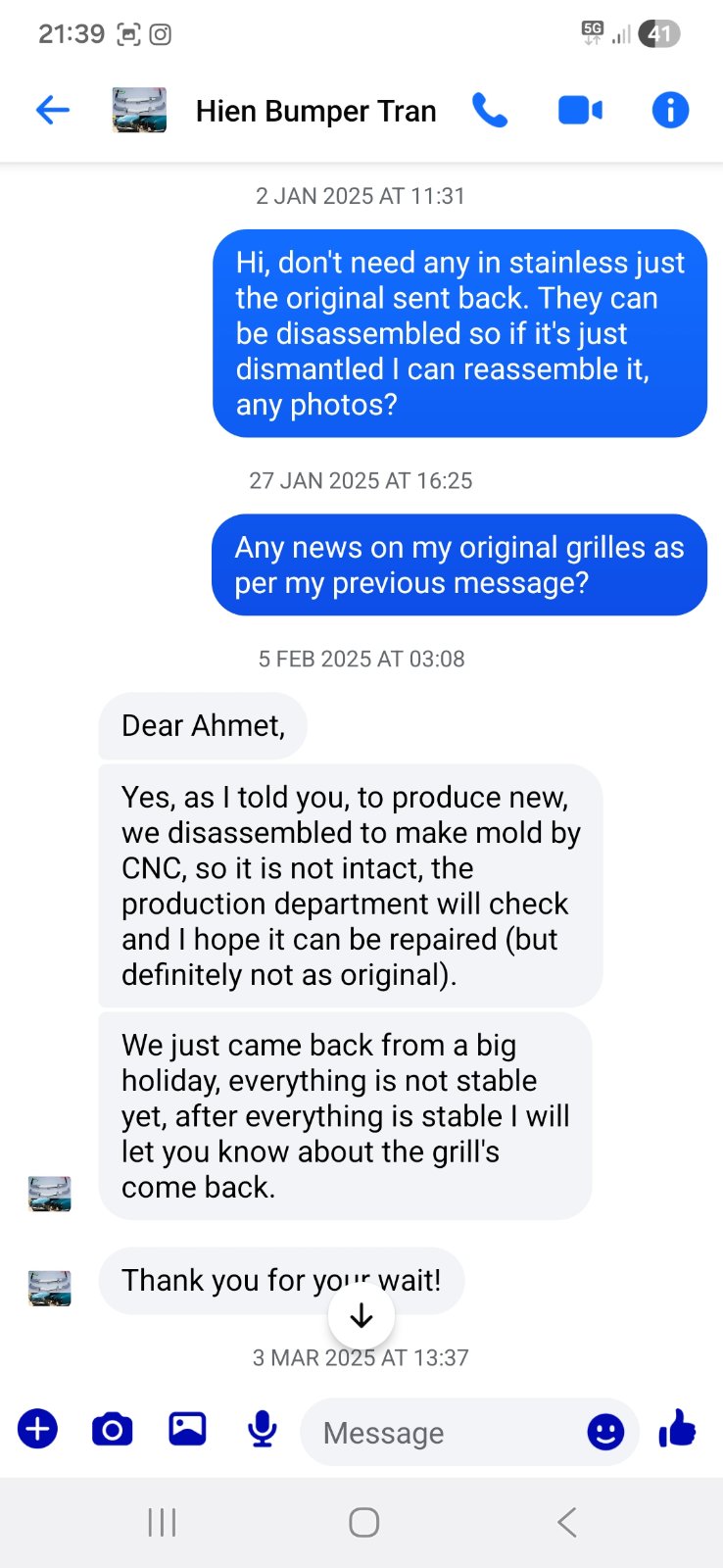 Oh boy, I hope the grille isn’t junk as everyone here seems to think oh well, many lessons learned here, I saw bumpers at your shop and at that time your comments were they were good, I haven’t ordered them yet glad everyone has made opining the important part of this forum. Grill held up in customs- arrives today will post pics either way- good thing I’ve got my well worn one still… now if I can find headlight grills…