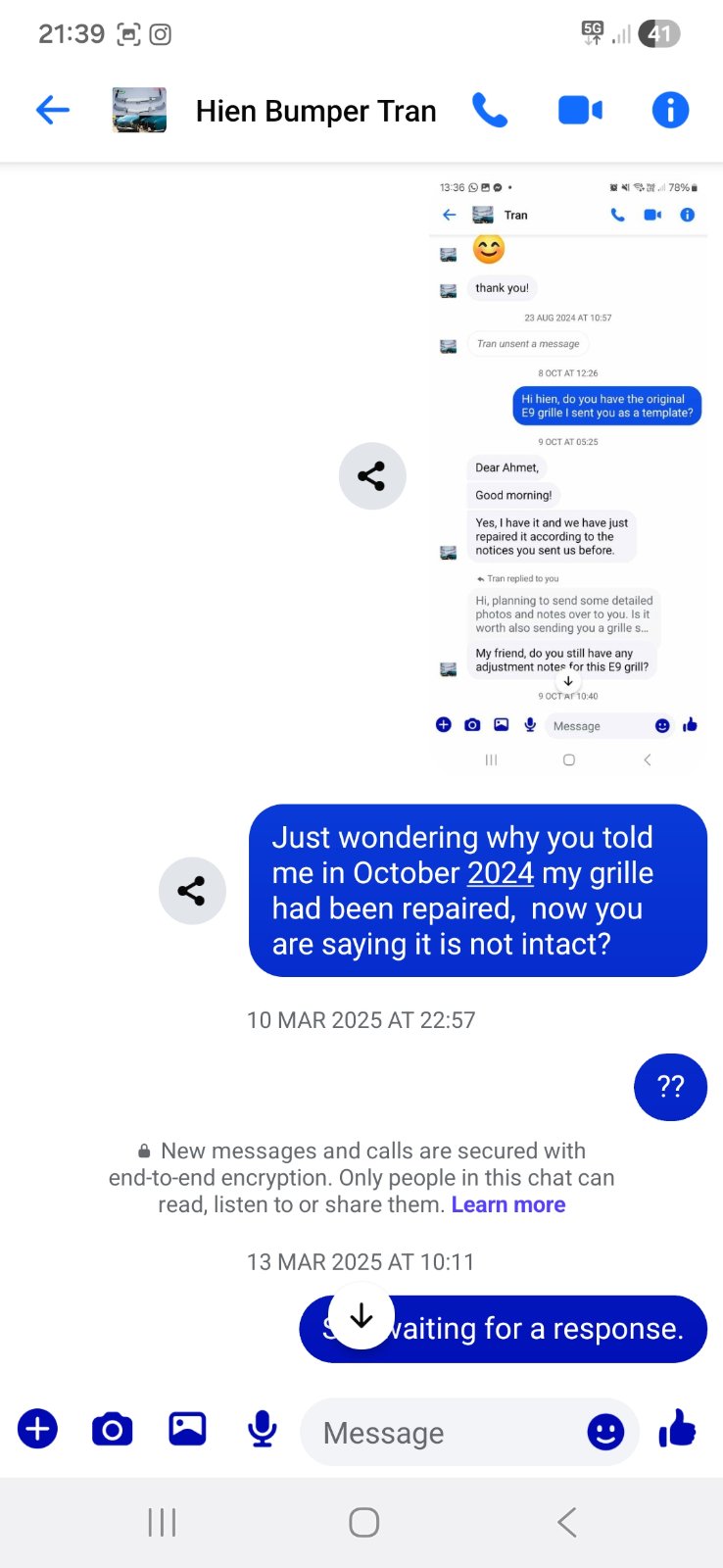" spend an age cutting and rewelding to get to fit, messages ignored multiple times and then had the gall to advertise their products using my photos."