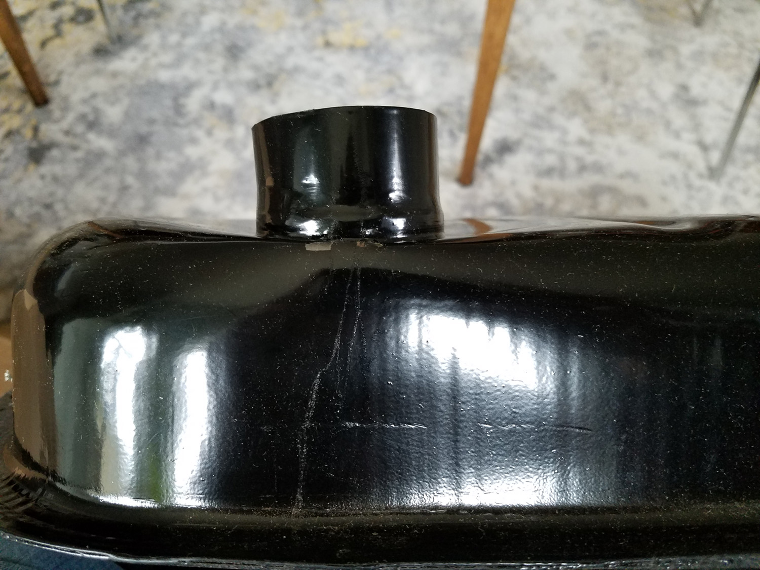 I found three obvious areas with damage. The most significant, I think, is that the filler neck has been pushed in. This deformed the top of the tank and has kinked the side a bit. There is also a small but sharp ding in the bottom of the tank. And there is some edge damage where the two halves come together. Rust is already present so this didn't just happen in a FedEx truck. There is also a hint of surface flash rust on the inside, which is probably normal.?. I have sent a message to BMW of South Atlanta, and need to wait for their reply. So again, am I overreacting, or should I expect a better piece? This was not cheap - currently the most expensive single part I've ordered for the car.