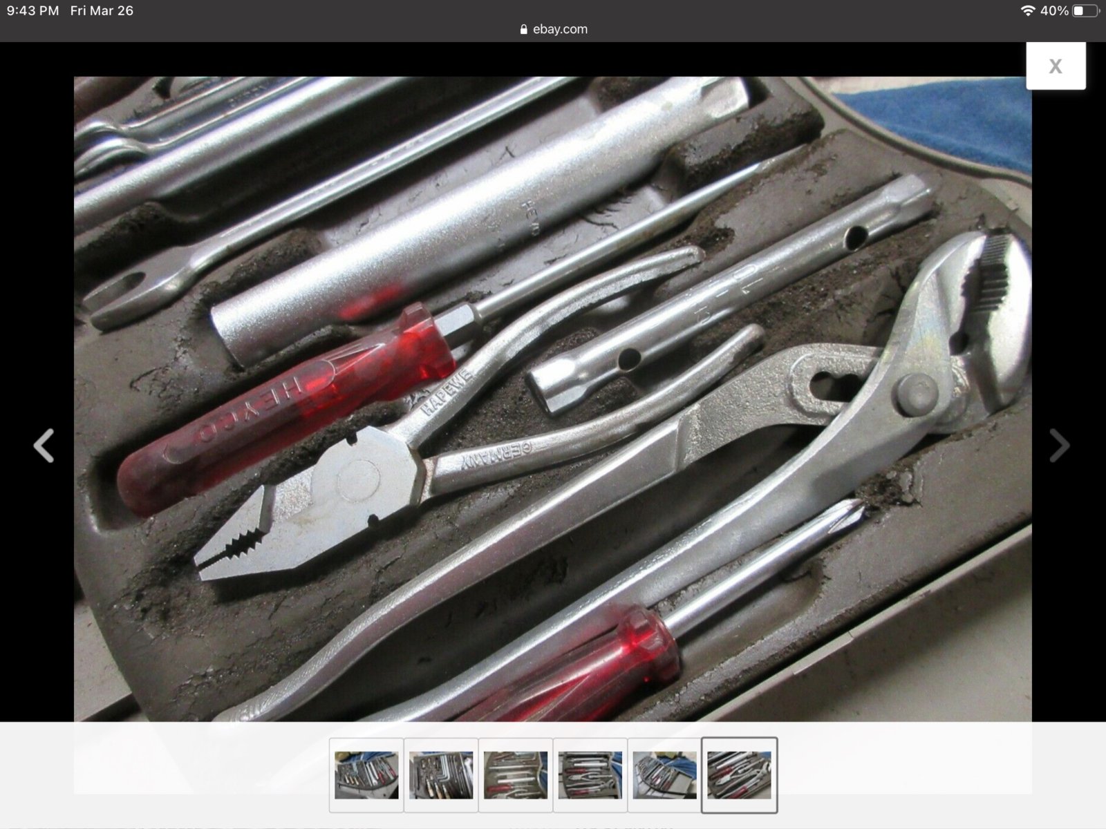 I have an almost complete toolkit, as shown in first photo. Missing the channel locks and the valve adjustment tool. Before I buy the channel lock, I want to make sure I know what I’m looking for.