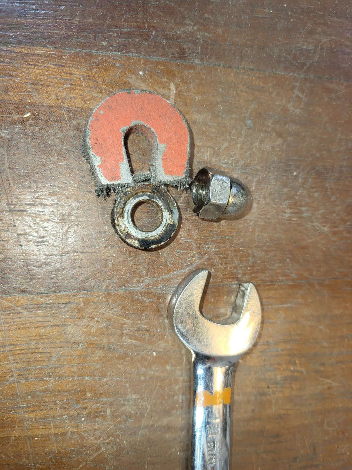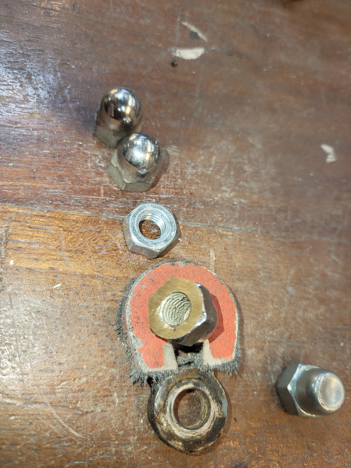 As expected, they were non-magnetic. So I sanded the chrome layer of the back of the nut.