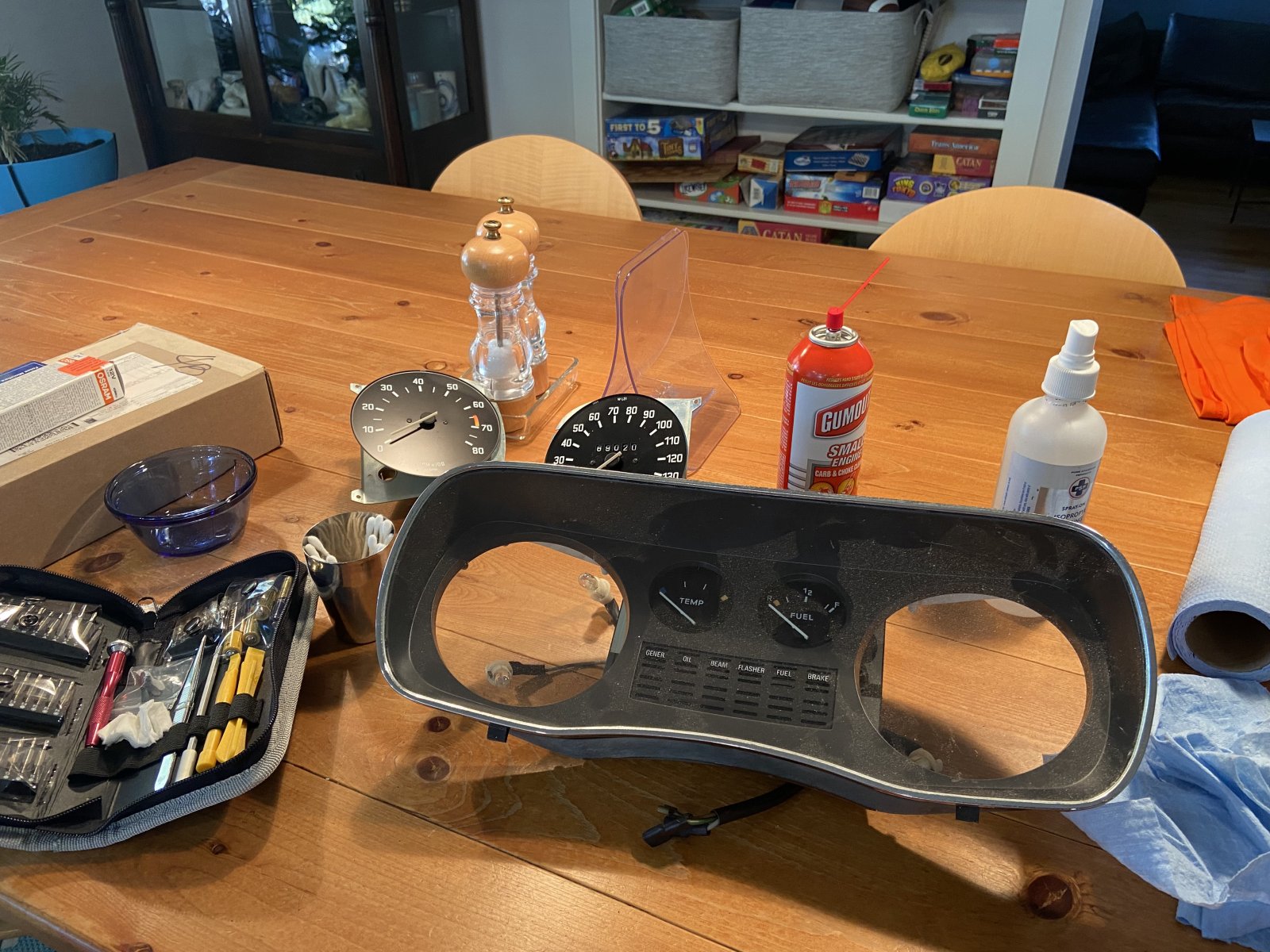 Finished prepping the engine compartment, front cowl and primed with 2 part epoxy. Cleaned soda from passenger compartment and started prepping trunk.