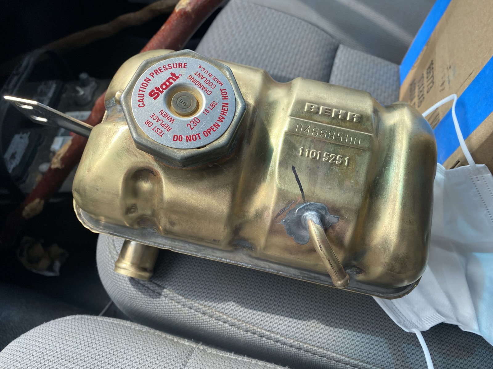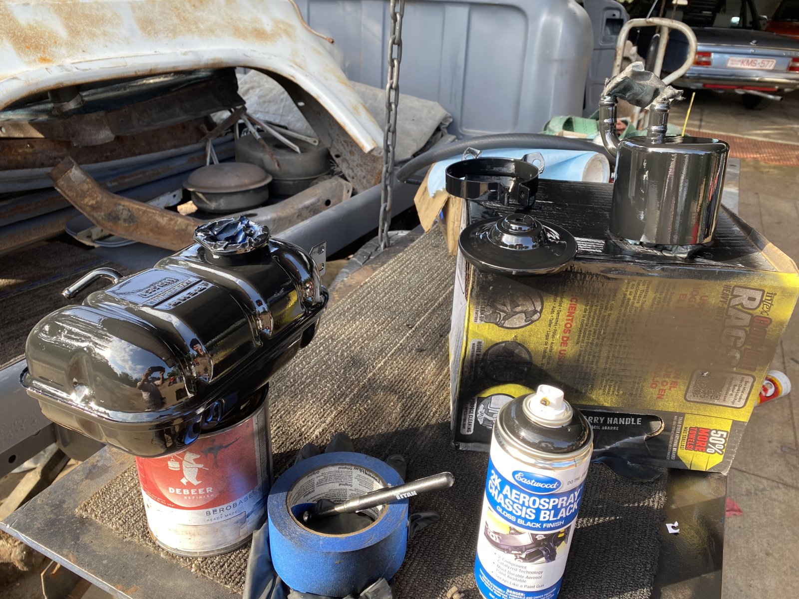 Today I removed, had repaired and painted my Radiator fill/overflow tank…the overflow inlet was loose so I cleaned it down to metalView attachment 120899View attachment 120900View attachment 120901 and had a friend soldered it back, Also removed and painted the Power steering reservoir…