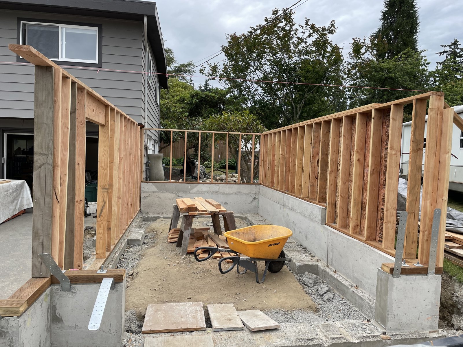 I opted for a divider wall between the main garage. Although it makes the working area tight it will keep the dust down, and parts hoard out of site. Size is 12’ x 23’. Main garage will be “functional parking”.