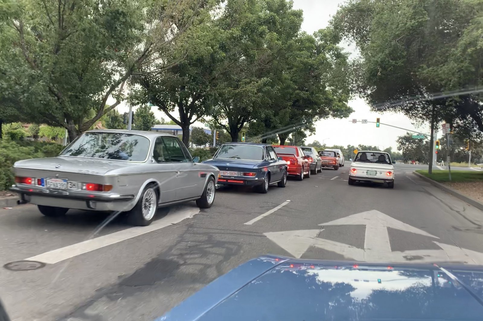 Poor quality pic but here is local couper Zach (sorry forgot his last name) in a beautiful csi behind Barney (notice the third brake light *below* the regular ones!). Leading the parade is Dirk in his Inca Targa ‘02. Can’t see him here but @HB Chris is in front of the white ‘02 in his NK.