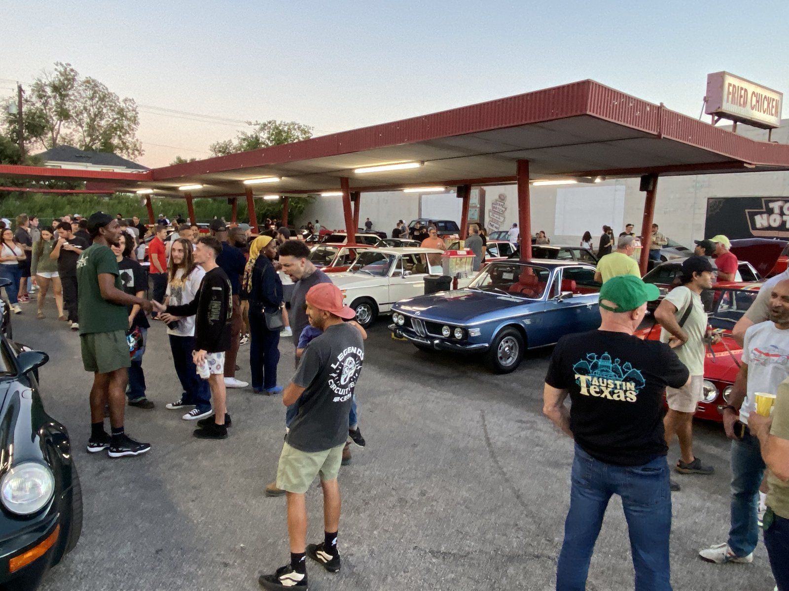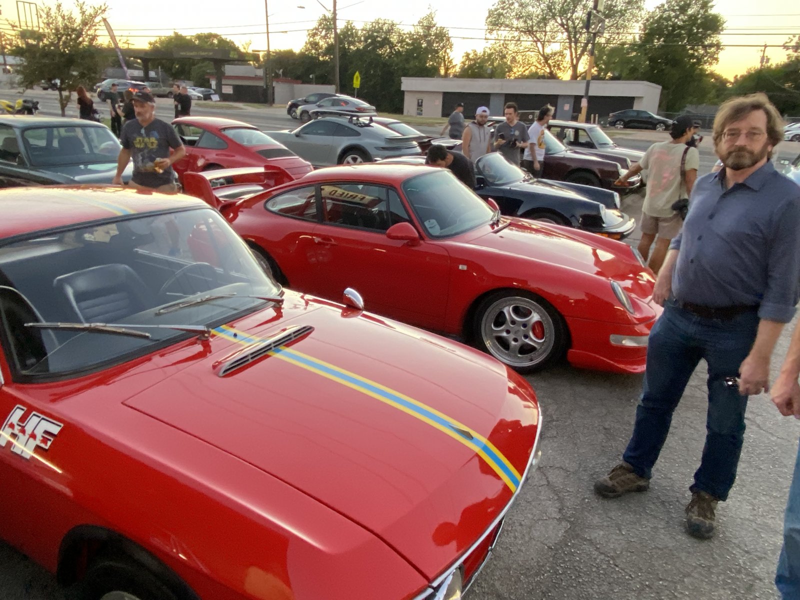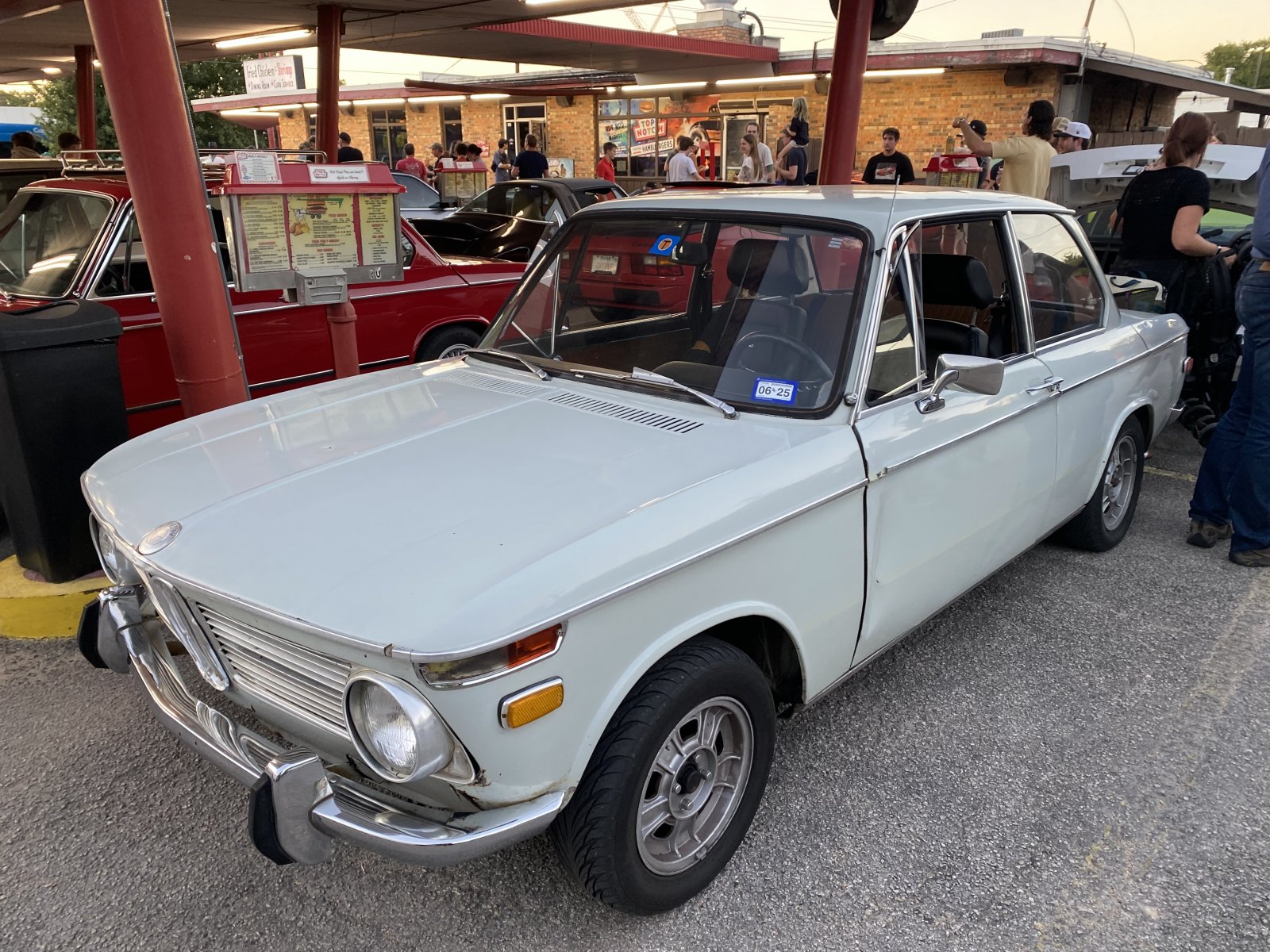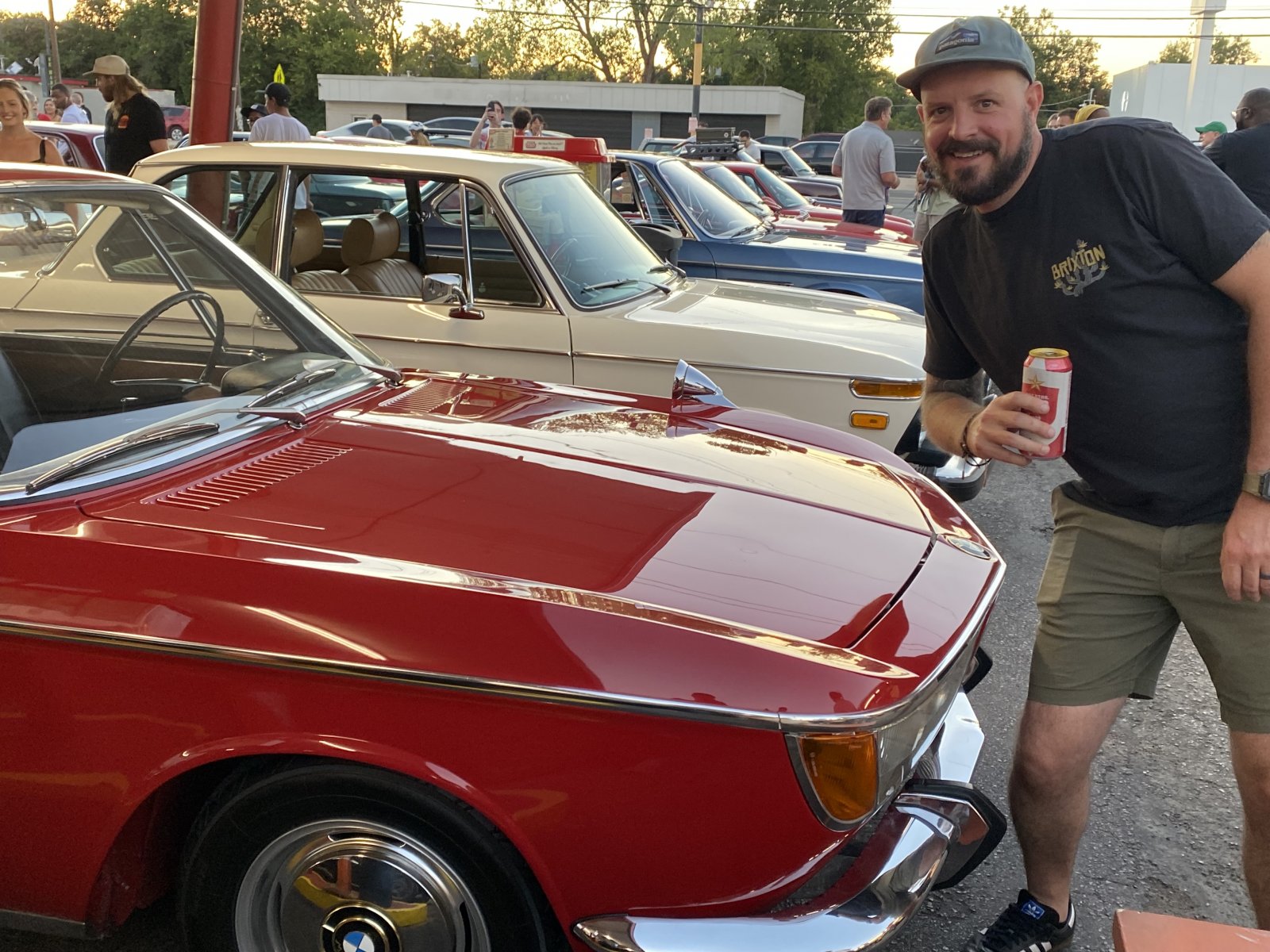 pre-1990 German car night at a local Austin hamburger joint called top-notch, They set up a little bar and sell beer at night for the get together… we had a good showing of BMWs… Ed Zinsmeyer brought his 67 Granada red CS…my son Kane’s Granada red 2002 with the rack.