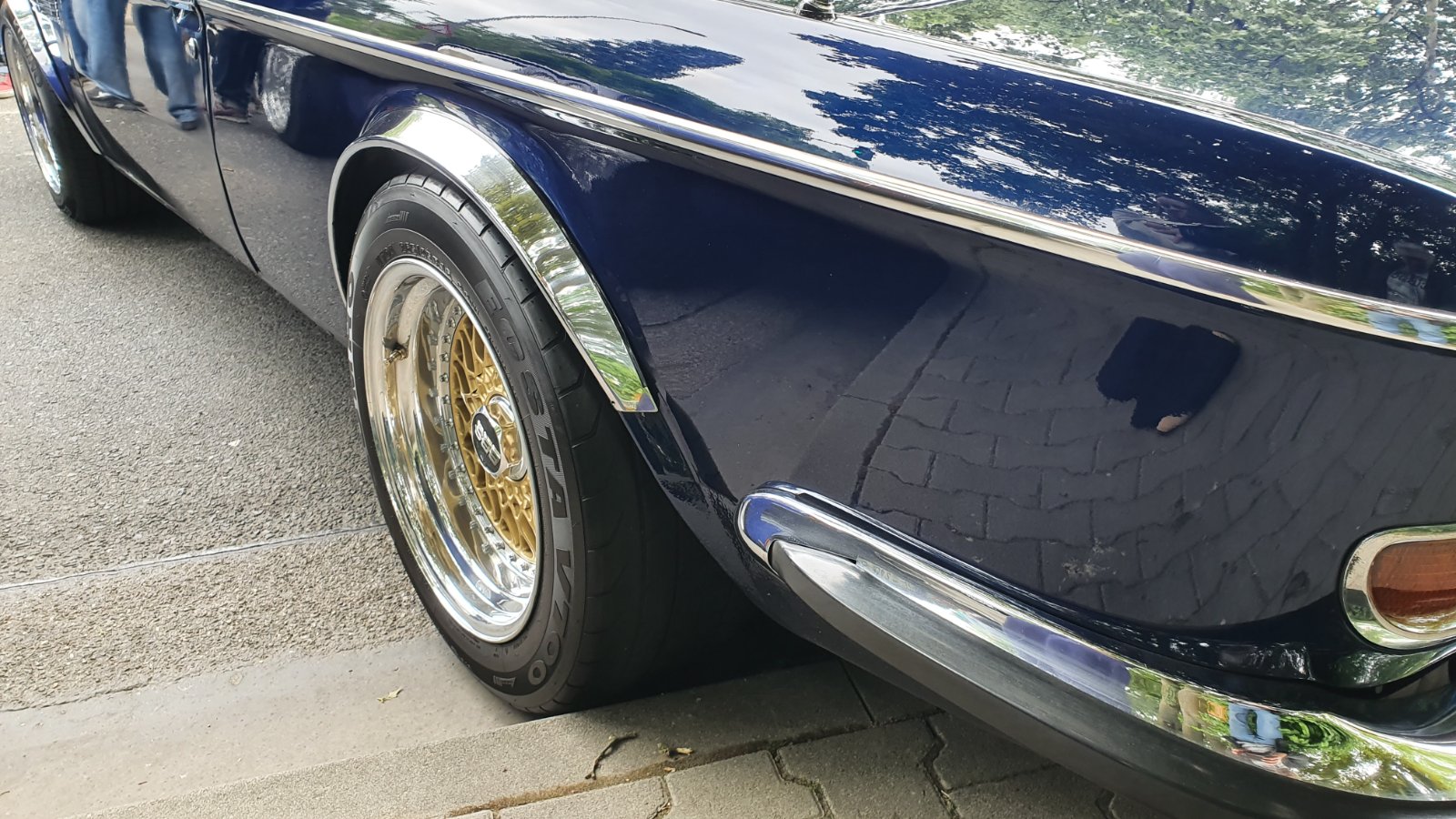 Looks great Steve, glad I could help.Drove my '72 Agave Bavaria to tennis. Modestly showing off my new chrome wheel arches(nobody noticed) and the chrome trim piece on the trunk deck that sits under the lock/button. I believe the chrome wheel arches were an available option throughout the run. The trunk piece was exclusive to the 68-70 2500/2800 run.