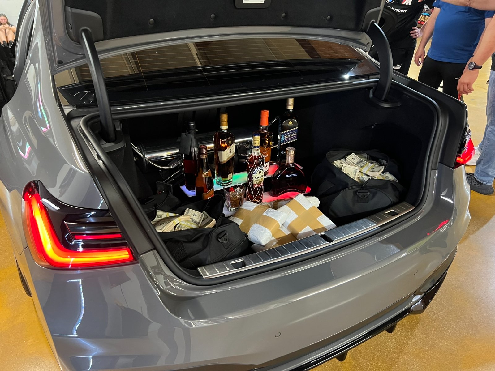 Here are all of the pics of the typical South Florida BMW 750i used in the display.The open trunk had the drugs on display. Maybe Drew will add that pic.