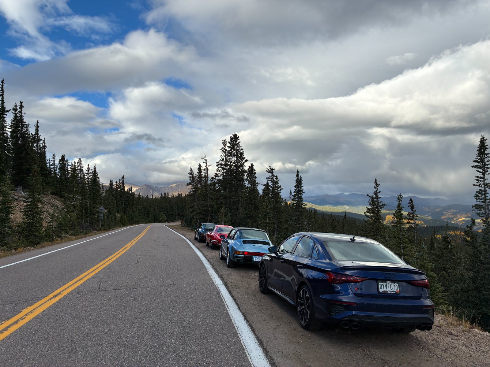 These are from the previous weekend on the same road when the E9 refused to leave the garage. I took my wife's S3 and thus, having the only non-classic, was relegated to the back of the line. Too bad the E9 couldn't make the trip because the partial cloud cover and occasional showers made for better photographic opportunities