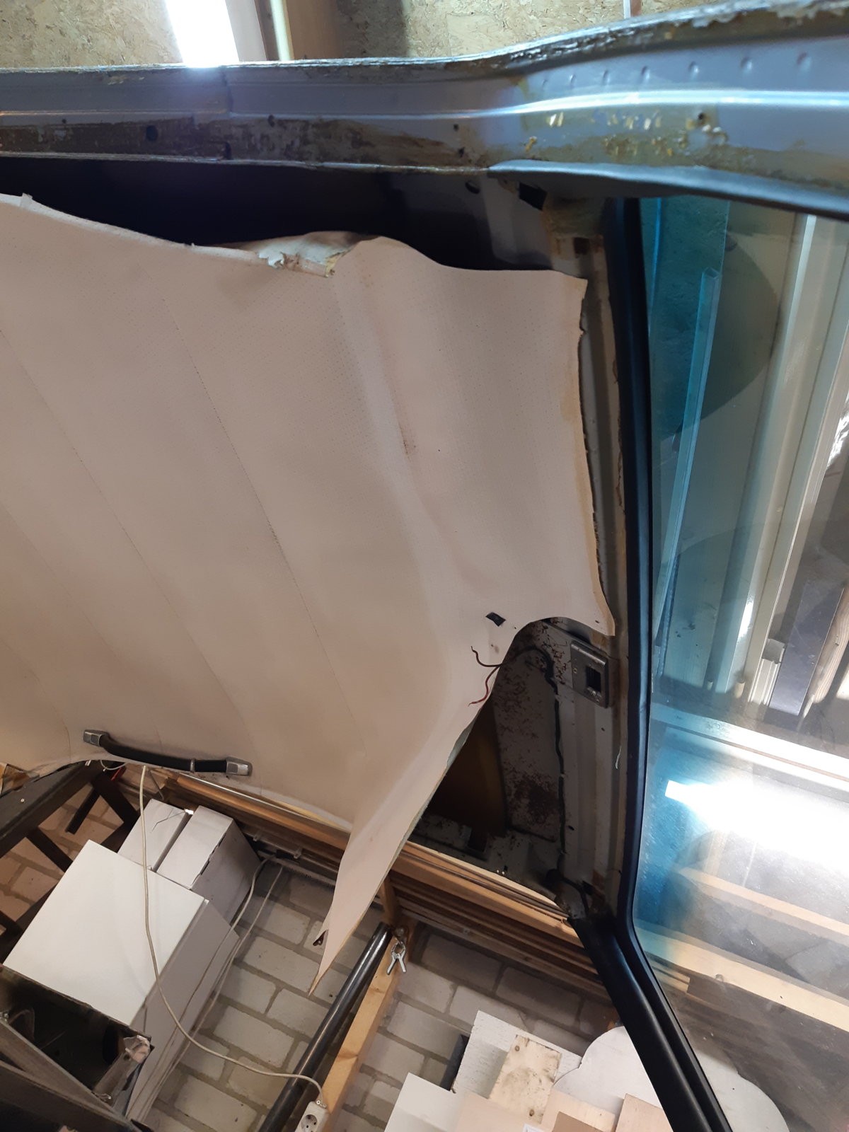 The donor for the skin was a non sunroof car, so no rust at all around the sunroof opening, which is imho the best case to do such a repair.