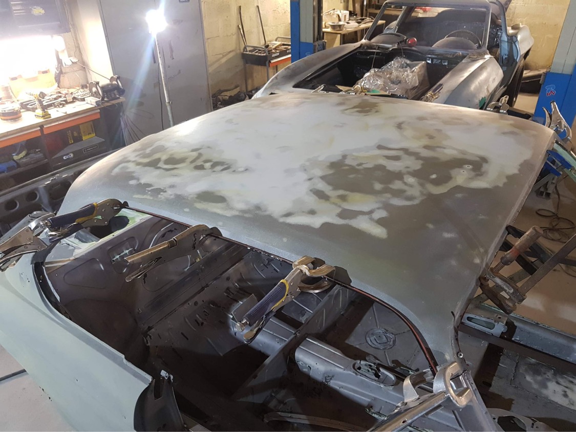 If you check out my thread, covering the restoration process of my coupe, you'll find some pictures from various works, including the roof skin exchange: